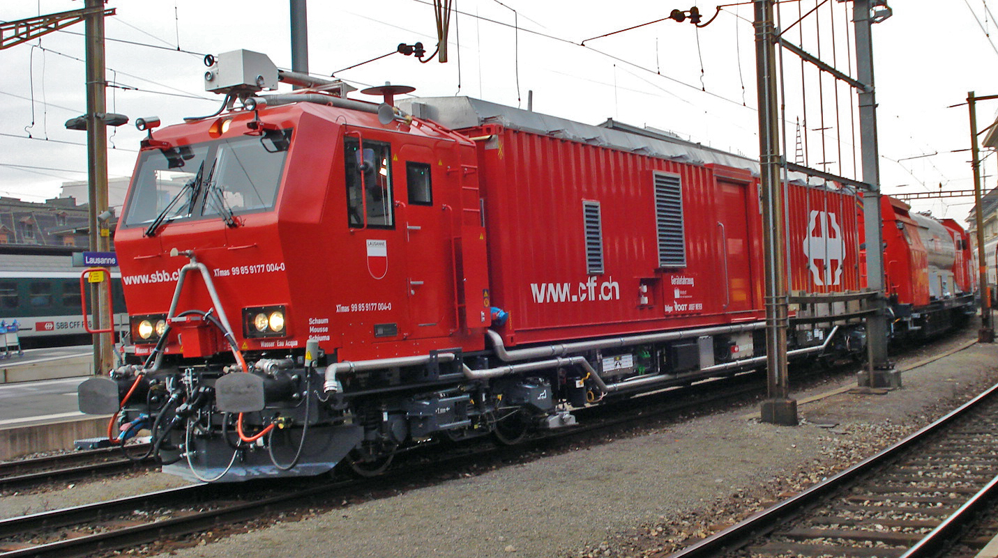 Pour mon premier message parmi vous, pas en tant que sapeur-pompier mais plutôt amateur de chemins de fer, après avoir fait une petite recherche sur ces Trains d'Extinction et de Sauvetage, voici une petite photo de ce nouveau TES Lausanne captée jeudi soir dernier 14/03 lors d'un bref arrêt en gare : il venait d'arriver sur voie 2, remorquant une automotrice Flirt. Mais je n'ai pas bien vu si ça venait de loin, et si la rame était vraiment en panne et donc que l'engin était en intervention, ou bien si c'était des exercices ou une formation. La rame remorquée a finalement été dételée puis remise sous tension sans problème particulier il me semble, et le TES a rejoint son stationnement dans l'avant-gare de Lausanne :