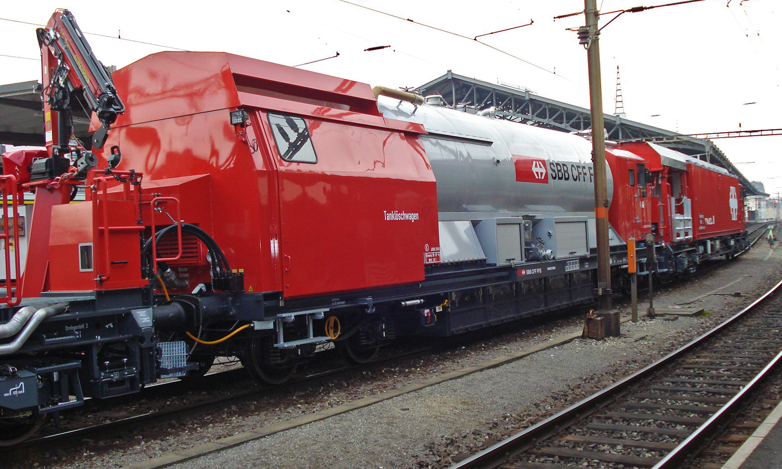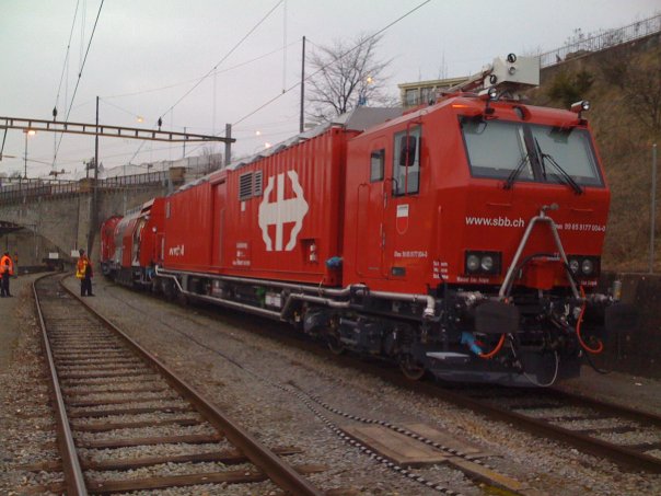 Pour mon premier message parmi vous, pas en tant que sapeur-pompier mais plutôt amateur de chemins de fer, après avoir fait une petite recherche sur ces Trains d'Extinction et de Sauvetage, voici une petite photo de ce nouveau TES Lausanne captée jeudi soir dernier 14/03 lors d'un bref arrêt en gare : il venait d'arriver sur voie 2, remorquant une automotrice Flirt. Mais je n'ai pas bien vu si ça venait de loin, et si la rame était vraiment en panne et donc que l'engin était en intervention, ou bien si c'était des exercices ou une formation. La rame remorquée a finalement été dételée puis remise sous tension sans problème particulier il me semble, et le TES a rejoint son stationnement dans l'avant-gare de Lausanne :